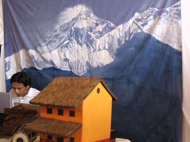 Subin Hada, "the emerging Nepali talented artist in US" chief designer of the Temple who also painted this magnificent Sagarmatha (Mt. Everest) in the bed sheet and also created typical Nepali house.