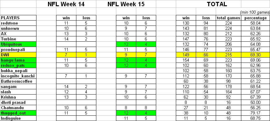 week 15 result....