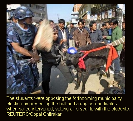 Here is another joke, Guys. :-) Insurance for poll candidates Kantipur Report KATHMANDU, Jan 26 - The Election Commission (EC) Wednesday announced that it would insure all the candidates taking part in the upcoming polls scheduled for February 8. According to a statement from the EC, the insurance amount of mayors and deputy mayor is Rs 700,000, Rs 600,000 for ward chairman and Rs 500,000 for candidates of ward members. - http://kantipuronline.com/kolnews.php?&nid=63735 All I can say is HA HA HA HA. :-)