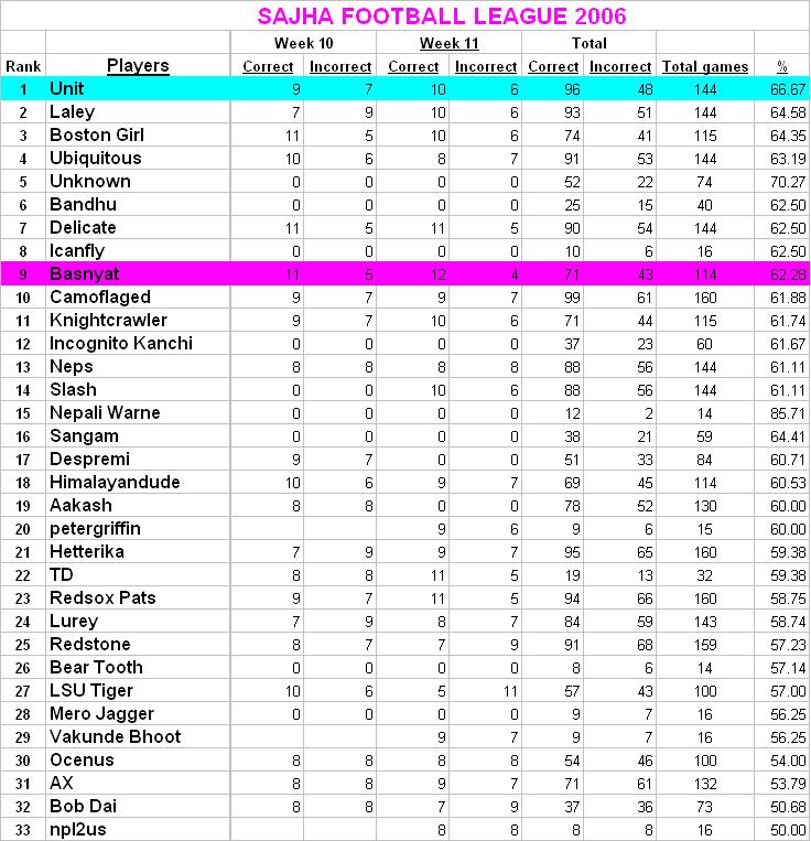 congratz to DWI and Hangu, they still share the overall lead... I was late posting so I only counted 4 sunday afternoon/evening and MNF matchups (all win)