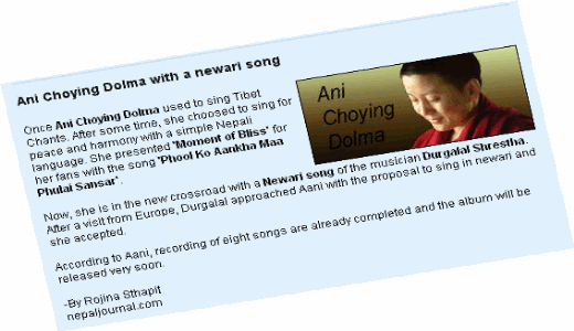 . महाकबि दुर्गालाल यागु अनुरोधय भिक्षुणी आणी चोयिङं नं नेवा म्ये हालिगु स्विकार याना दिल। .