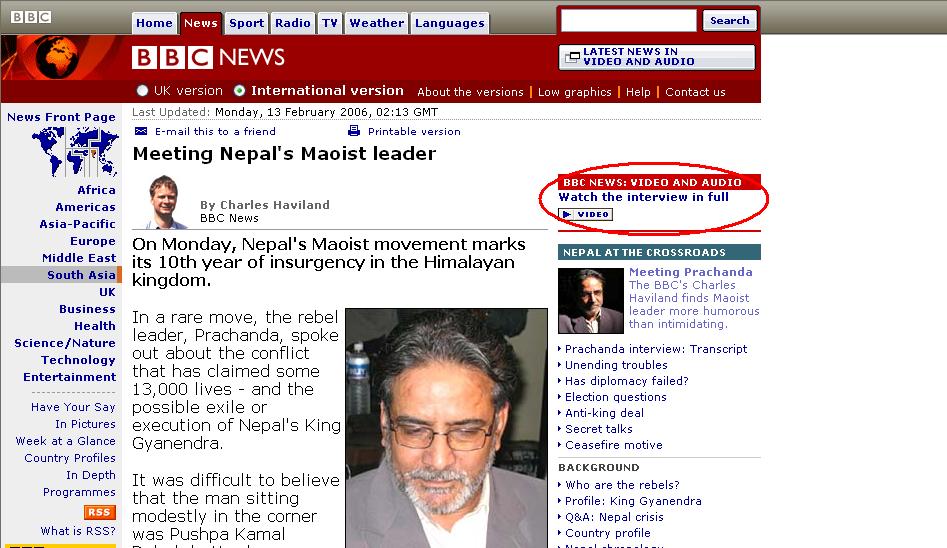 Somehow I tend to believe that Maoists are the one who have been greatly benefitted by the Feb 1st movement of the King. The fact that the King cornered himself after his move of Feb 1st has made it possible for the Maoists to come upfront and talk to the media. Their so called "People's war" was/is going to take them nowhere and who else know about it better than they themselves but they were not in a position to come to the media and talk openly since they were/are referred to as "terrorists" by many. But now since the King is segregating himself from the parties, people, maoists and perhaps from international support, Maoists are on a role.