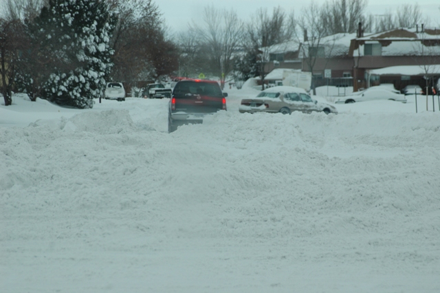 I was stupid enough to check my bank's drive through, could not get to the parking lot.