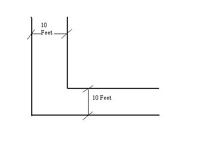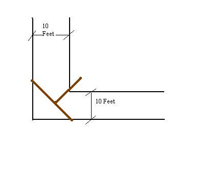 As shown in the figure - The river flows whose width is 10 feet even after perpendicular deviation. Given 2 logs of flatten wood each of 10 feet, how can be a bridge constructed?