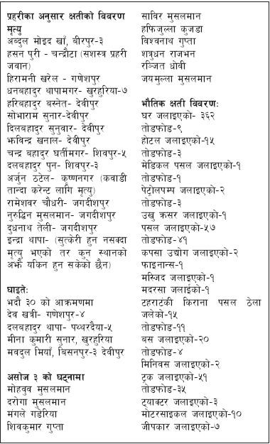 Read this http://www.mysansar.com/?p=1928#more-1928 कपिलवस्तुको घटना सञ्चारमाध्यममा आएभन्दा भयावह छ। अहिले त्यहाँ मर्नेहरुको संख्या ३१ पुगेको छ। यसै साता त्यहाँको स्थलगत रिपोर्टिङमा गएर फर्किएका एक सञ्चारकर्मी भन्दै थिए, ३१ जनाको त लाश मात्रै भेटिएको हो, अझ कति त भेटिनै बाँकी छ। तपाईँ कस्तो भयावह, क्रुर र अमानवीय कुराको कल्पना गर्नसक्नु हुन्छ ? त्योभन्दा पनि भयावह छ त्यहाँको कुरा। गाउँका गाउँ जलाइएका छन्। लाश डढेर चिन्नै नसकिने, खरानी भएका छन्। वीरपुर गाविसको सुराही खोल्सामा टुक्राटुक्रा पारेर काटेर गाडिएको अवस्थामा लाश फेला परेको छ। आज फेरि त्यहाँ झडप भएर केहीको मृत्यु भयो। साम्प्रदायिक दंगा फैलिएकाले दाङमा समेत आज कर्फ्यु लगाउनु परेको छ। यति ठूलो घटना हुँदा पनि न सरकार संवेदनशील देखिएको छ न नेपालीहरु नै। कति नेपालीलाई त थाहा पनि छैन कपिलवस्तुमा के भएको छ भनी। हामी नेपाली किन यसरी असंवेदनशील बन्दै गएका हौँ ? यति ठूलो घटनाले पनि हाम्रो मन किन छोएको छैन ? सरकार त निकम्मा भयो, भयो। देशमा आफ्नै दाजुभाइहरु काटाकाट गरेर साम्प्रदायिक दंगा फैलिँदा पनि कसैलाई वास्ता नै छैन, किन ? काठमाडौँमा शृंखलावद्ध बम विस्फोट भएको भोलिपल्ट नेटवर्क व्यवसायका दलालहरुले र्याली निकालेको त तपाईँले थाहा पाइसक्नुभएको छ। आखिर यो ‘गैँडा प्रवृत्ति’ किन बढिरहेको ? गैँडाको छाला एकदमै बाक्लो हुन्छ। उसलाई केही कुराले पनि असर पार्दैन। शायद हामी नेपालीको मन पनि त्यस्तै बाक्लो भएको हो कि ! शेयर बजारमा बुलिस ट्रेण्ड हुने गर्छ। तर हाम्रो देशको शेयर बजारमा भने बुलिस हैन, उही गैँडा प्रवृत्ति छ- केहीले पनि नछुने। अब हेर्नुस् न, विकसित देशमा भएको भए ठूलो राजनीतिक घटनाक्रम हुँदा, अस्थिरताको आशंकामात्र भए पनि शेयर बजारको सूचकांकमा निकै गिरावट आउँछ। तर हामी कहाँ हेर्नुस् त- माअोवादीले १८ सेप्टेम्बरमा सरकारबाट बाहिरिएर चुनाव बिथोल्ने आन्दोलनका कार्यक्रम सार्वजनिक गर्यो, तर नेप्से परिसूचक भने बढ्यो 10.66 अंकले। काठमाडौँमा जुन दिन शृंखलावद्ध बम विस्फोट भएर निर्दोषको ज्यान गएर यहाँका बासिन्दा आतंकित भएका थिए, त्यो दिन अर्थात् २ सेप्टेम्बरमा नेप्से परिसूचक १६ अंकले र त्यसको भोलिपल्ट १३ अंकले बढेको थियो। स्रोत भनेपछि हाम्रो शेयर बजारलाई राजधानीमा बम पडकियोस् कि देशमा राजनीतिक अस्थिरता छाअोस्, केही मतलब हुँदैन। शेयर बजारको कुरालाई नेपाली मनसित तुलना गर्न सकिन्छ। गौरमा हत्याकाण्ड हुँदा बरु केही हल्ला भएको थियो। तर कपिलवस्तुको घटनालाई सामान्य रुपमा लिइएको छ। जबकि गौरमा भन्दा कम भयावह र क्रुर आक्रमण कपिलवस्तुमा भएको छैन। लाशै गन्ने हो भने पनि कपिलवस्तुमा बढी मारिएका छन्। गौर राजनीतिक प्रतिशोधका कारण गरिएको हत्य
