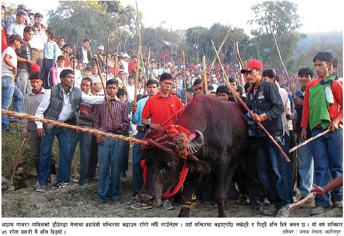71 buffaloes killed that way?? Man, in this day and age I fail to see if we Neps are a civilized bunch. I agree to sacrifice maybe a religious right, but it doesn't justify an entire village beating and tormenting a buffalo to its final place of slaughter. That is fuggin inhumane to the highest degree!! Just get it over with in a single shot rather than make it die a horrible death.