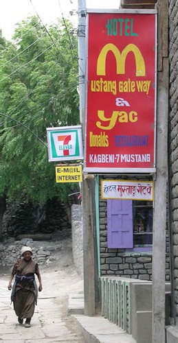 In a place so far out into the Himalayas where no one belonging to the McDonald's organization could ever think of serving some sort of legal summons without garnering altitude-sickness, here's a scene from Kagbeni...They even have the Golden Arches (M...And a YAC Donald's like in Yak Donald's) and damn, a 7-Eleven too??? Awesome! Looks like the High Himalayas are witnessing the wrath of globalization (sans the Royalty though) faster than I can say "dyam"!!