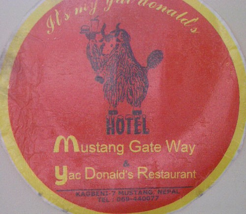 A pic of a drink coaster from the Nepali Golden Arches of Kagbeni: