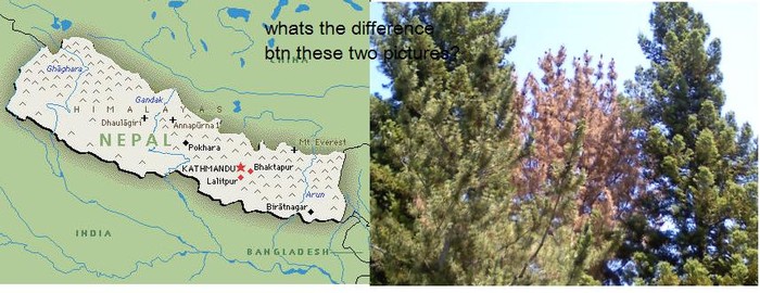 आज म बारान्दा मा बसेर नियलदै थिय , तर फरक आँखा ले , यो सल्लो को रुख लाई। वोइलिये को यो रुख भित्र मैले नेपाल देखे। वरपर का यि दुबइ रुख हरु हराभरा देखिन्थे, अनी प्रक्रिती का सबै रङ हरु बोकेर बिच्को त्यो रुख लाई जिस्क्याको जस्तो लग्थ्यो । वरपर का रुख का हागाहरु फैलियर बिच्को रुख्लाई चुनौती दिदै थिए। बिचरा त्यो रुख न प्रतिकआर गर्न सक्थ्यो , न हताउन नै!!! यो त बस चुप्चाप थियो, निन्यौरो थियो, जशरी आज नेपाल छ। भारत ले सिमा मिचेर तेत्रो बबआल गर्दा पनि हामी किन चुप चाप ??तर ,  हामी यो रुख जस्तो चुप्चप हुनुह्हुन्न। नत्र त्यो रुख र हामी म के फरक हुन्छ र !!!!!!
